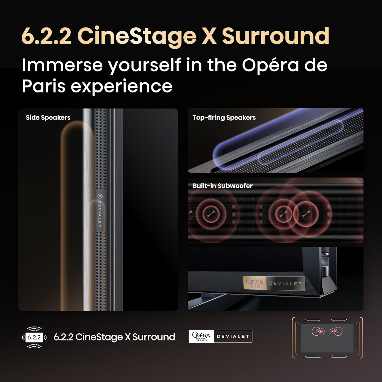 Hisense 100-Inch Premium UX Series RGB-MiniLED 4K UHD HDR Google Smart TV(100UX, 2025) - RGB MiniLED, Up to 8000 nits, 3D Color Master Pro, Native 165Hz Panel, 6.2.2 CineStage X(100-Inch)
