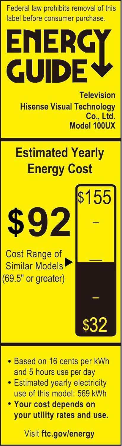 Hisense 100-Inch Premium UX Series RGB-MiniLED 4K UHD HDR Google Smart TV(100UX, 2025) – RGB MiniLED, Up to 8000 nits, 3D Color Master Pro, Native 165Hz Panel, 6.2.2 CineStage X(100-Inch)