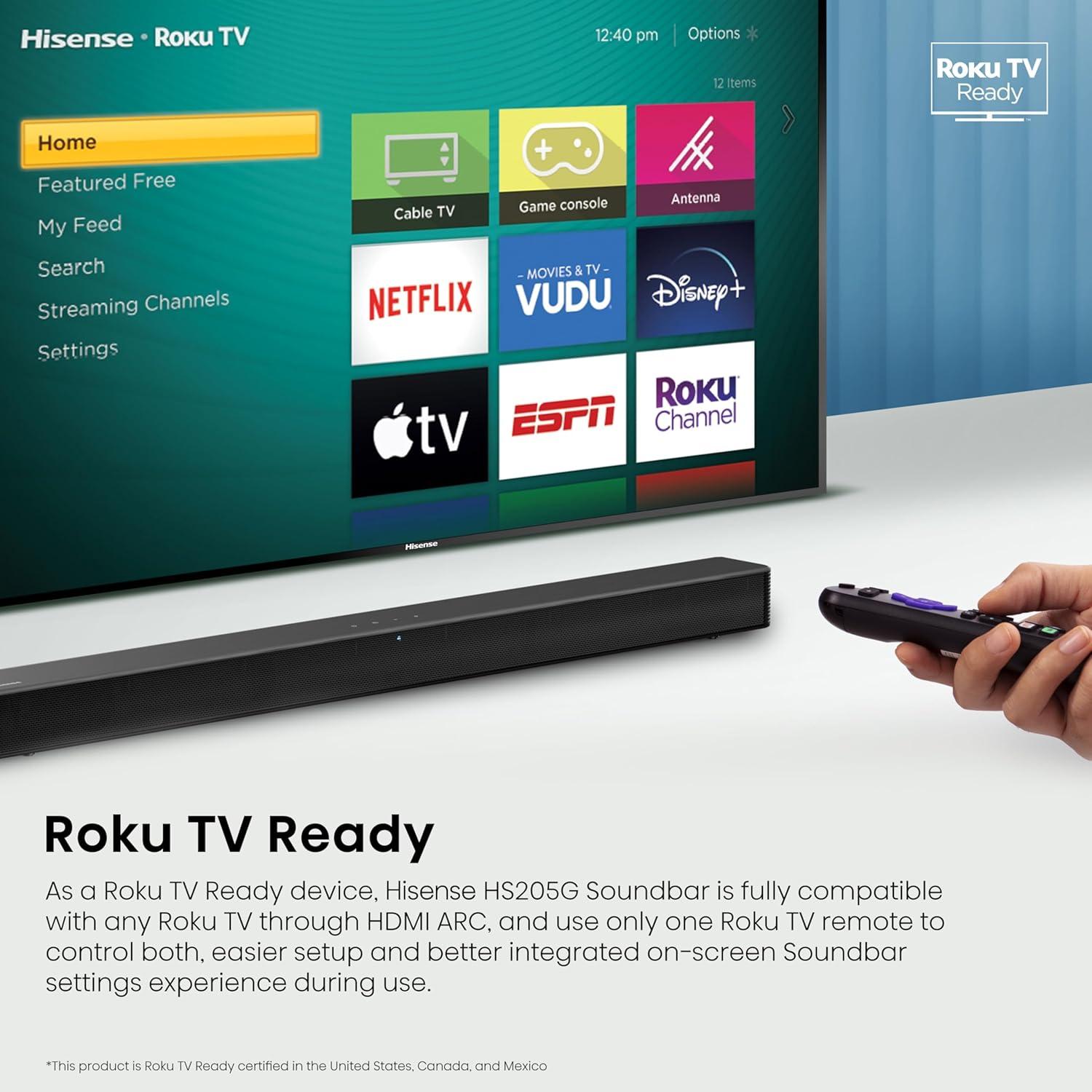 imageHisense A620 21ch Allinone Sound Bar with Builtin Subwoofer 240W DTS Virtual X Dolby Dightal Plus Bluetooth 53 Roku TV Ready HDMI ARCAUXUSB Ez Play Black A620 2024 Model120W