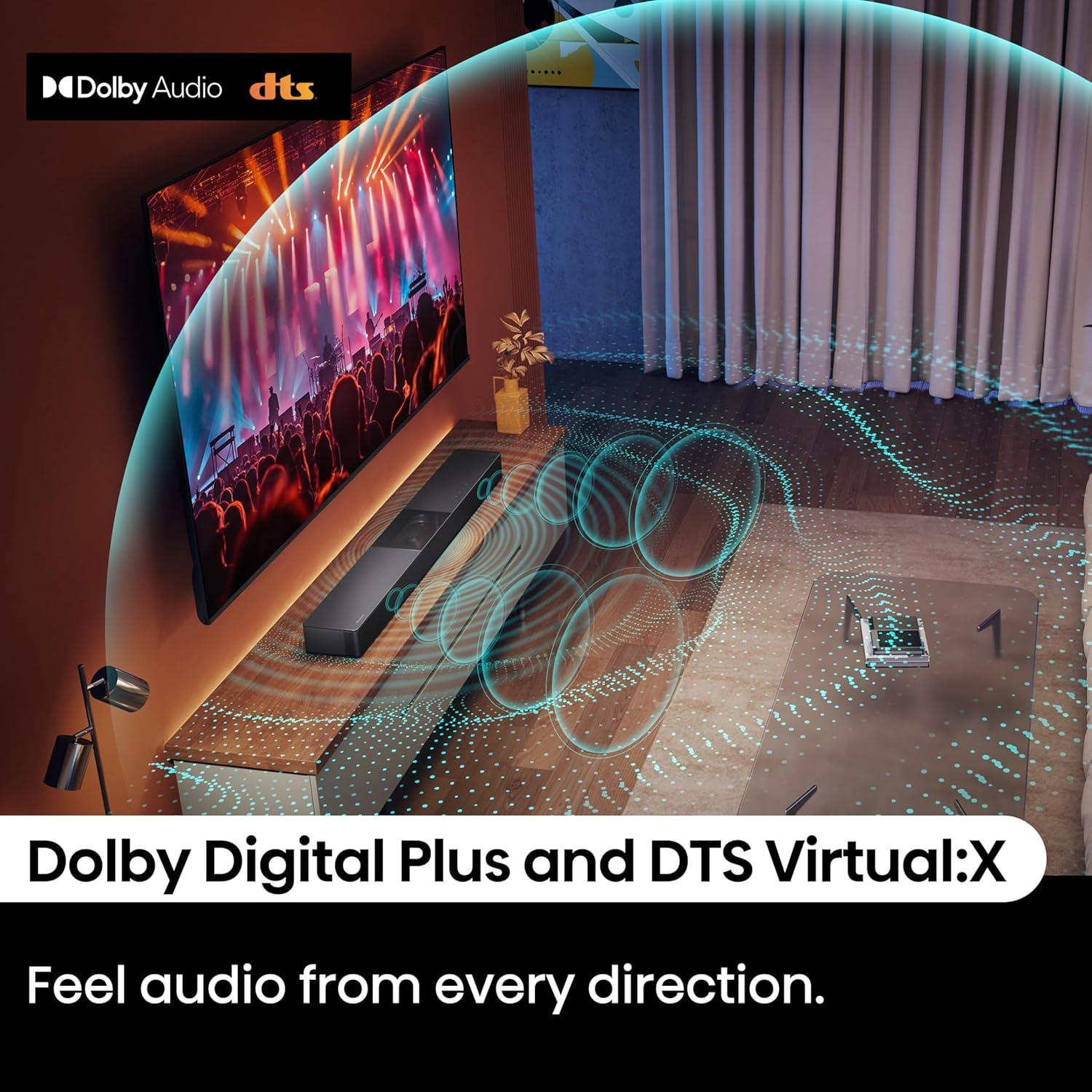Dolby Digital Plus and DTS Virtual:X: Dolby Digital Plus is an advanced surround sound audio technology that enables theDolby Audio experience across home theaters, smartphones, operating systems, and browsers. DTS Virtual:X is an audio codec designed to provide sound a sense of multi-dimensional space or of sound moving around you within an environment.